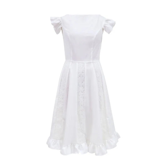 Elegant Dresses for Woman 2024 O Neck Short Sleeve High Waisted Pleated Mid Calf Luxury Female Birthday Party Dinner Vestidos