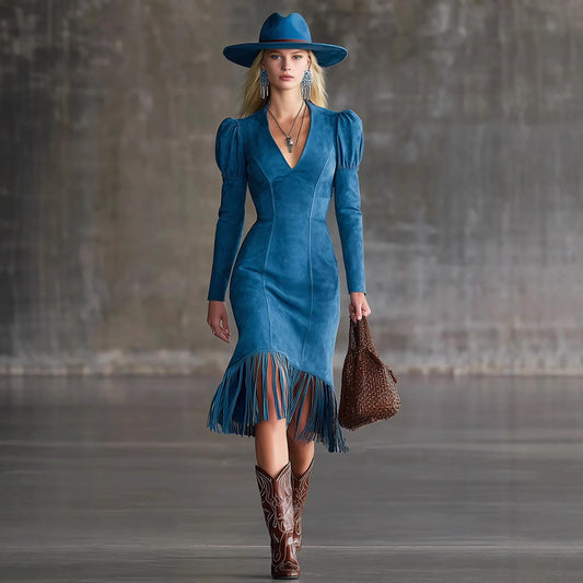 Elegant Woman Dresses Retro Turndown Collar Leopard Print Long Dress Autumn Single Breasted Long Sleeve Western Cowboy Dress
