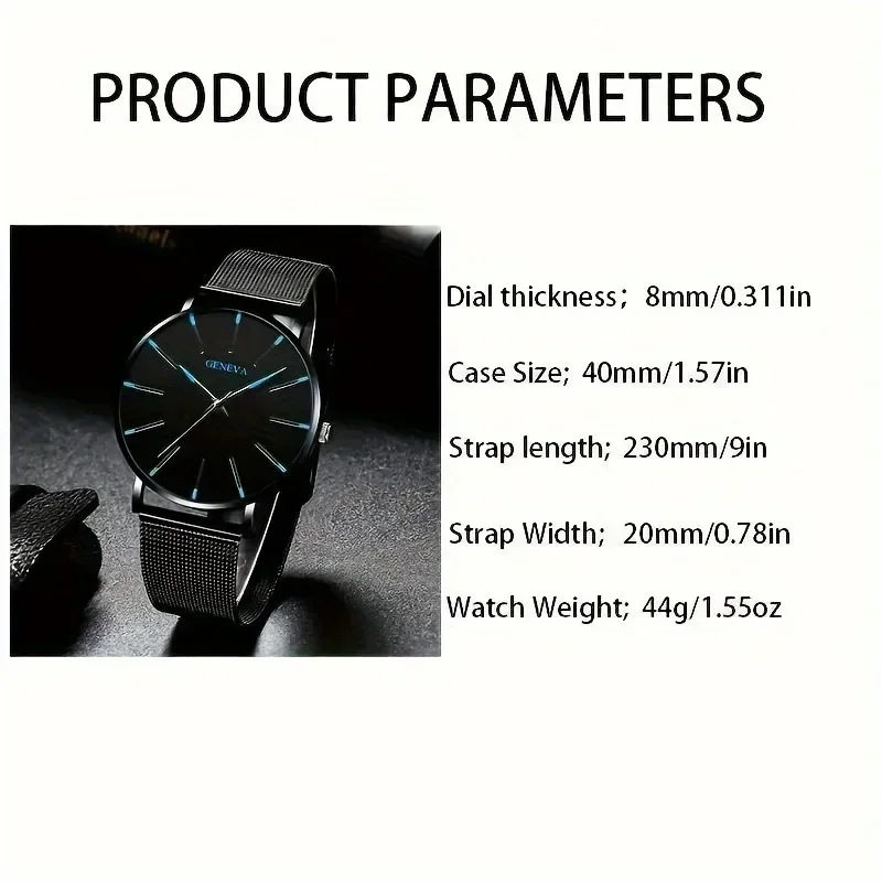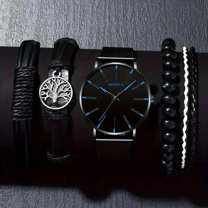 Fashion Men's Quartz Watch Set, Business Casual Timepiece with Beaded Cuff, Alloy Case & Scratch-Resistant Glass